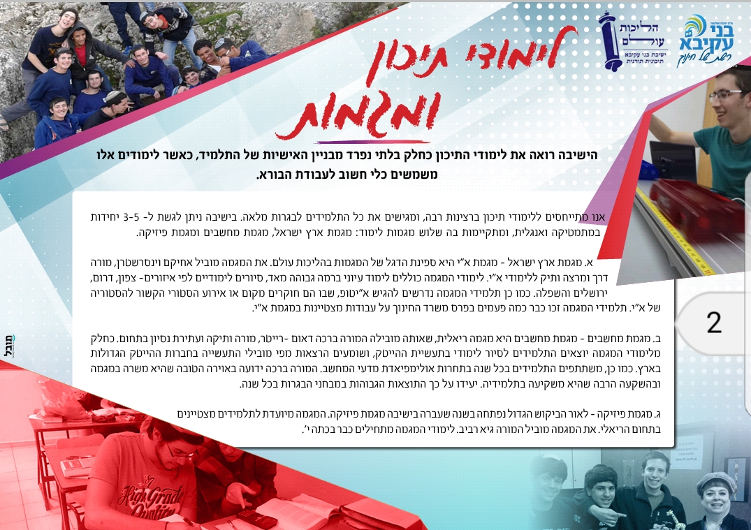 הישיבה מתאימה לילד בעל יכולות חברתיות ולימודיות, שיש לו לעולם הקודש, ומעוניין להתקדם בעולם התורה.